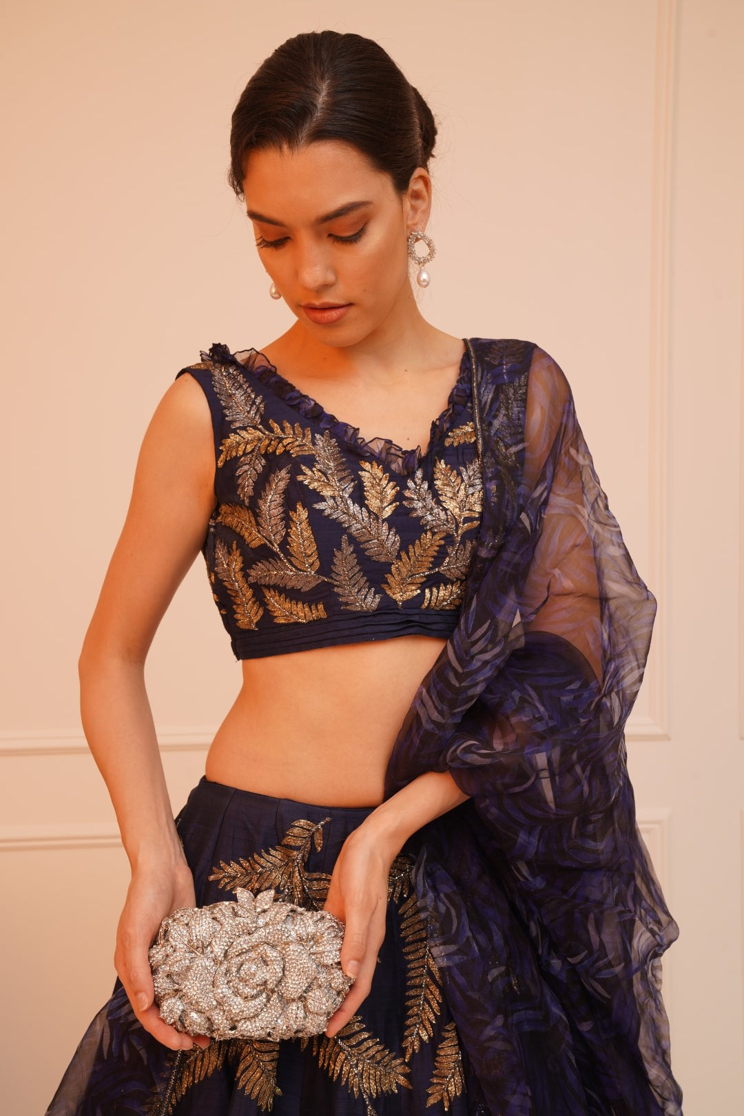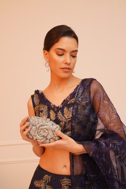 BARATABA is a distinctive piece, combining elegance and intricate craftsmanship with a design that features rises and leaves embellished with sparkling crystals. It is available in three sophisticated color options.
