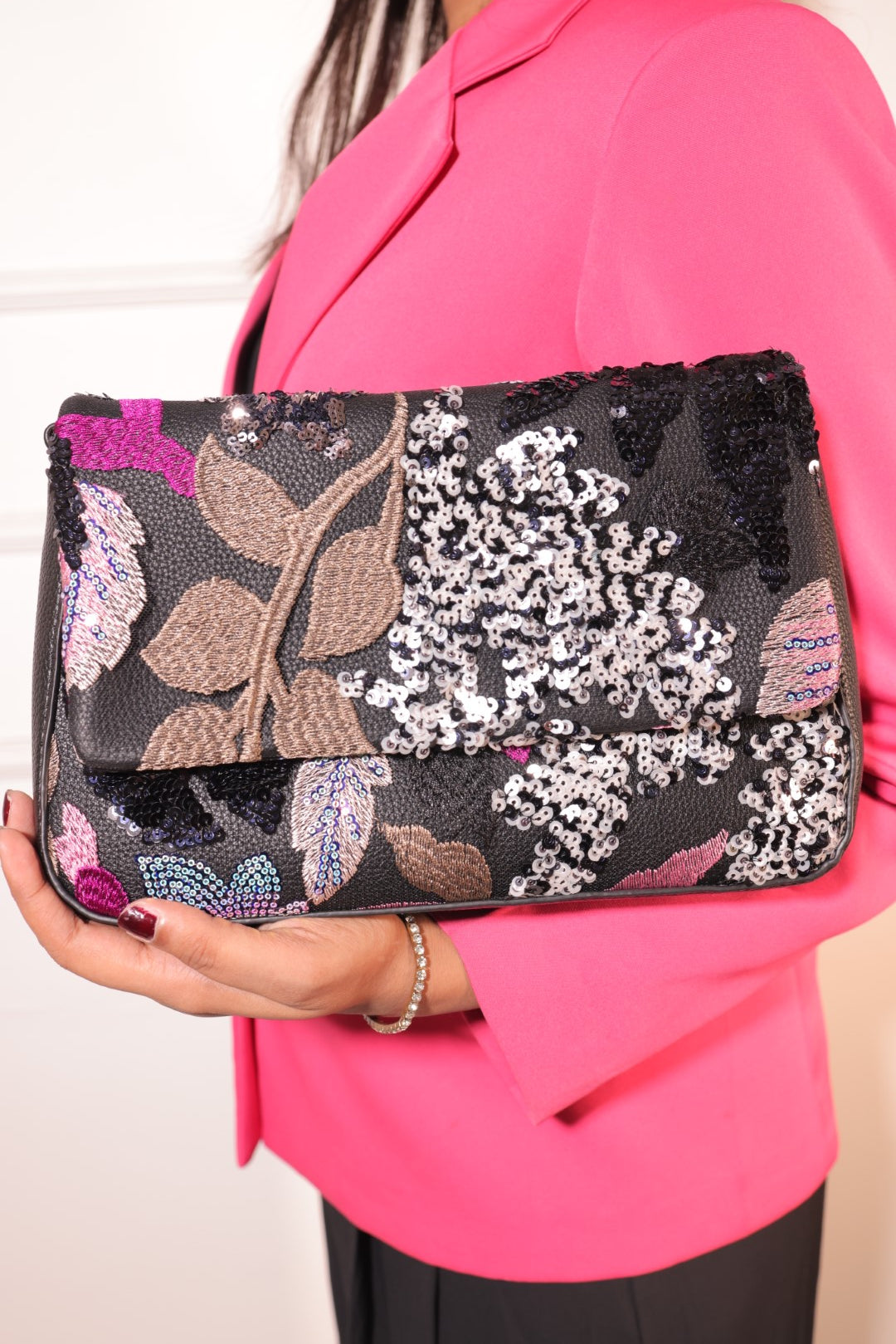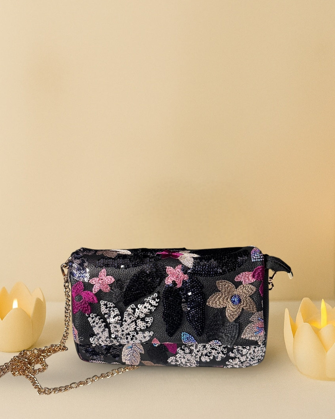 Bag is adorned with intricate floral patterns. Combination of casual yet elegant design makes it suitable for both formal and everyday occasions.